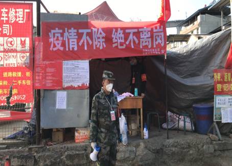 闻“疫”而动,首战有我!退役军人喻安亮与交警、医务人员一起,值守疫情防控检查点,逐一对过往车辆进行拦截、劝返、检查、登记、消毒喷洒卫生防疫等工作,一站就是12个小时,一守就是5天。家就在附近,可出门6天来,他一次也没回去过。“战‘疫’不停,绝不撤退!”他掷地有声地道出了广大退役军人英勇无畏的英雄气概。