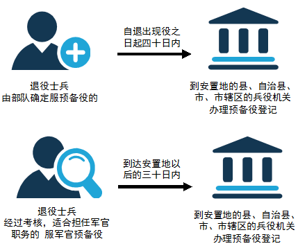 士兵退出现役时,符合预备役条件的,由部队确定服士兵预备役;经过考核,适合担任军官职务的,服军官预备役。
