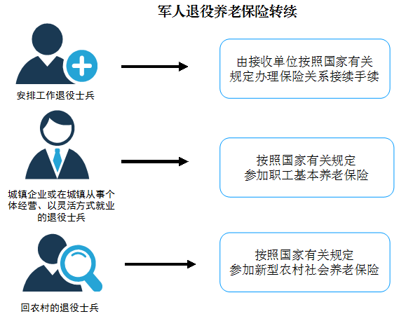 对自主就业的退役士兵,凭退役军人事务部门出具的介绍信,由社会保险经办机构按照国家有关规定办理保险关系接续手续。对安排工作的退役士兵,由接收单位按照国家有关规定办理保险关系接续手续。